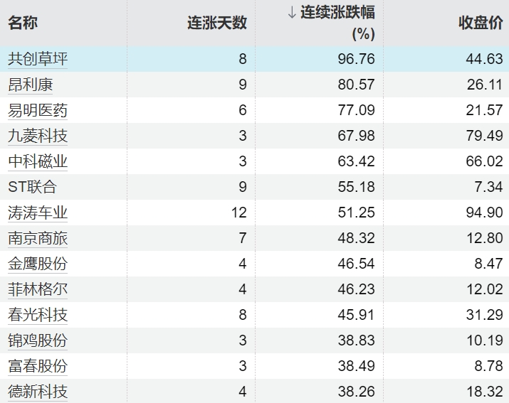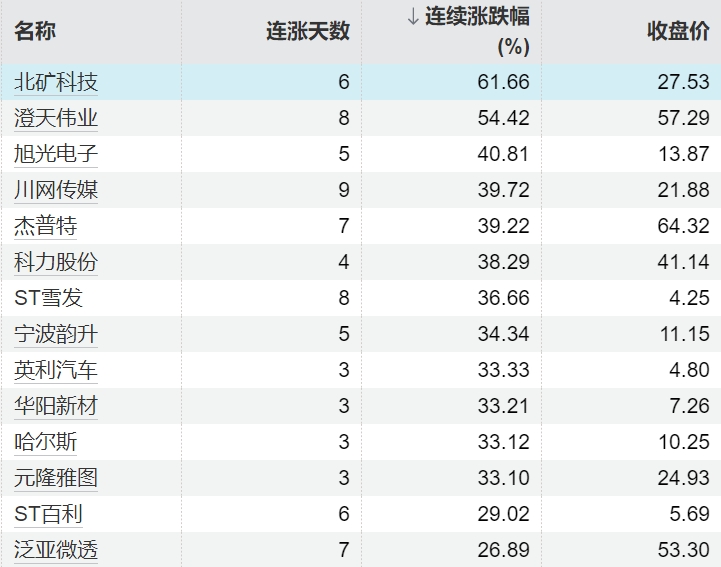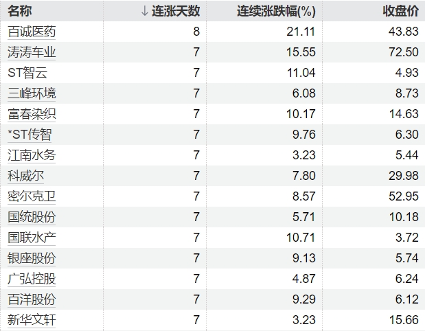 0 06-11 15:1685只个股连续上涨5个交易日及以上