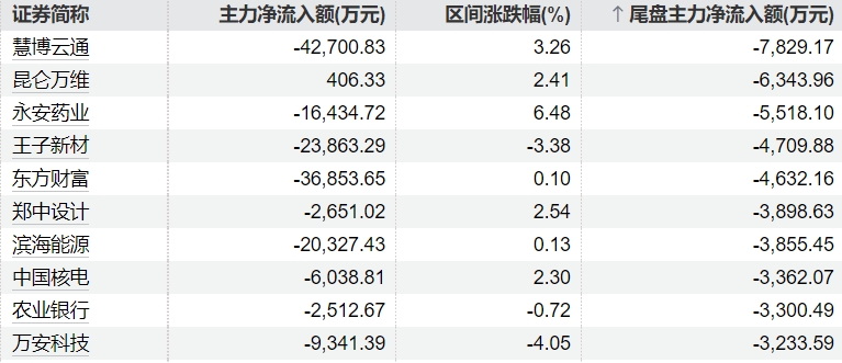 0 06-03 15:51主力今日尾盘买卖这些个股